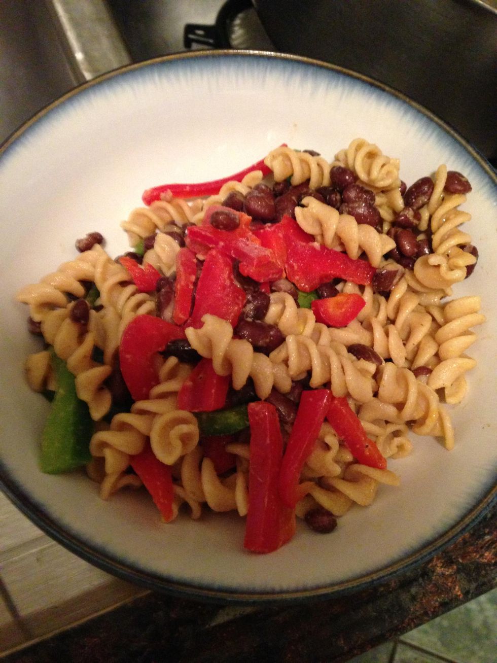 Mix it all together ... You can also add chicken or tuna and some Italian dressing if desired :-) ... I added a little more black pepper. And done