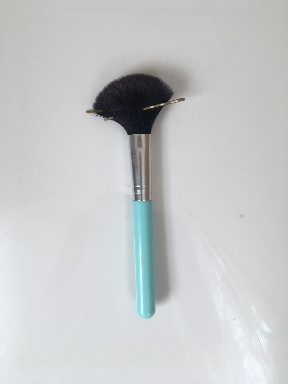 For everyone like me who is too lazy to go buy a fan brush just take two bobypins and stick them at the base of blush brush