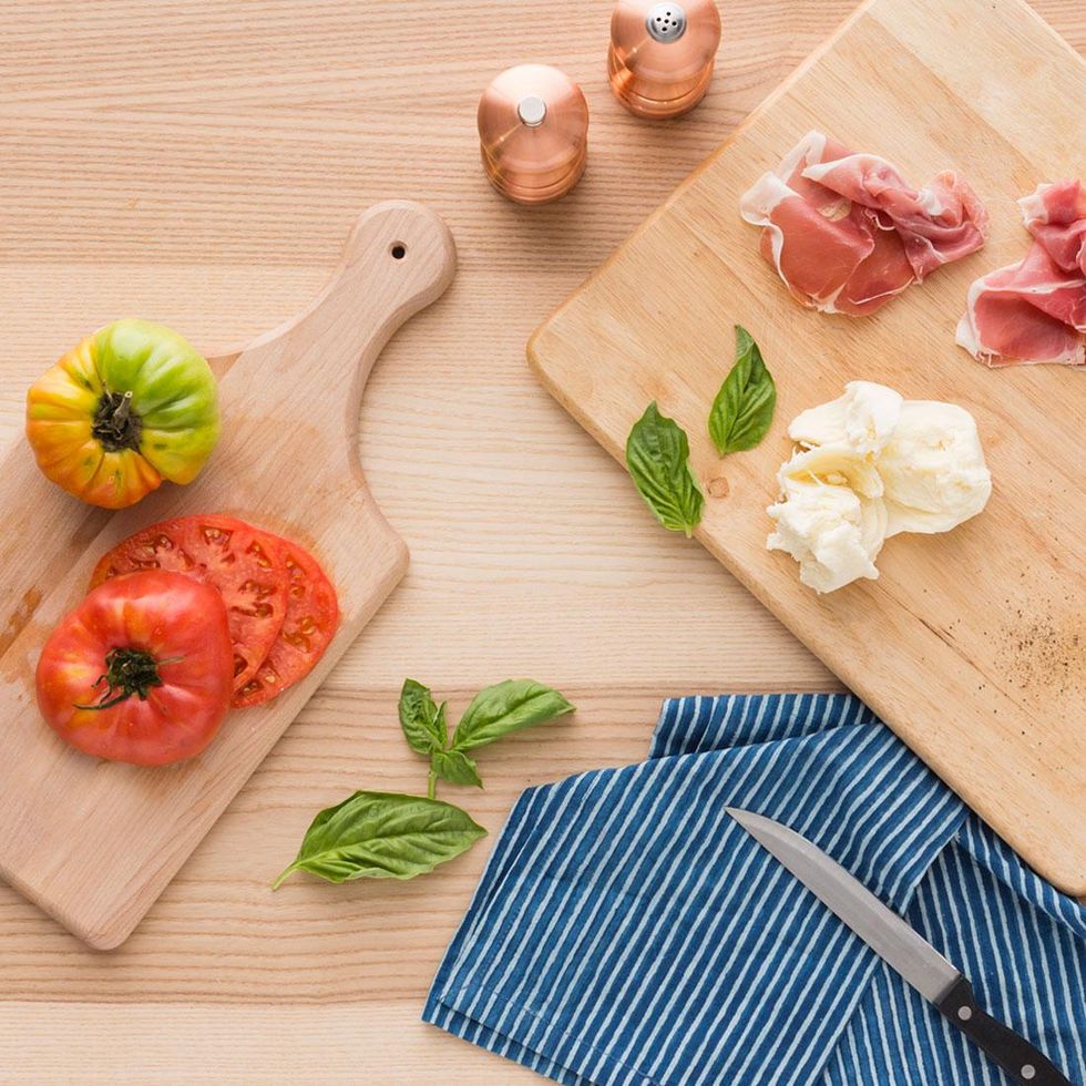 In this shot, the handled board provides a leading line, encouraging your eye to move toward the center of the frame. The second cutting board provides a line that also draws your eye in.