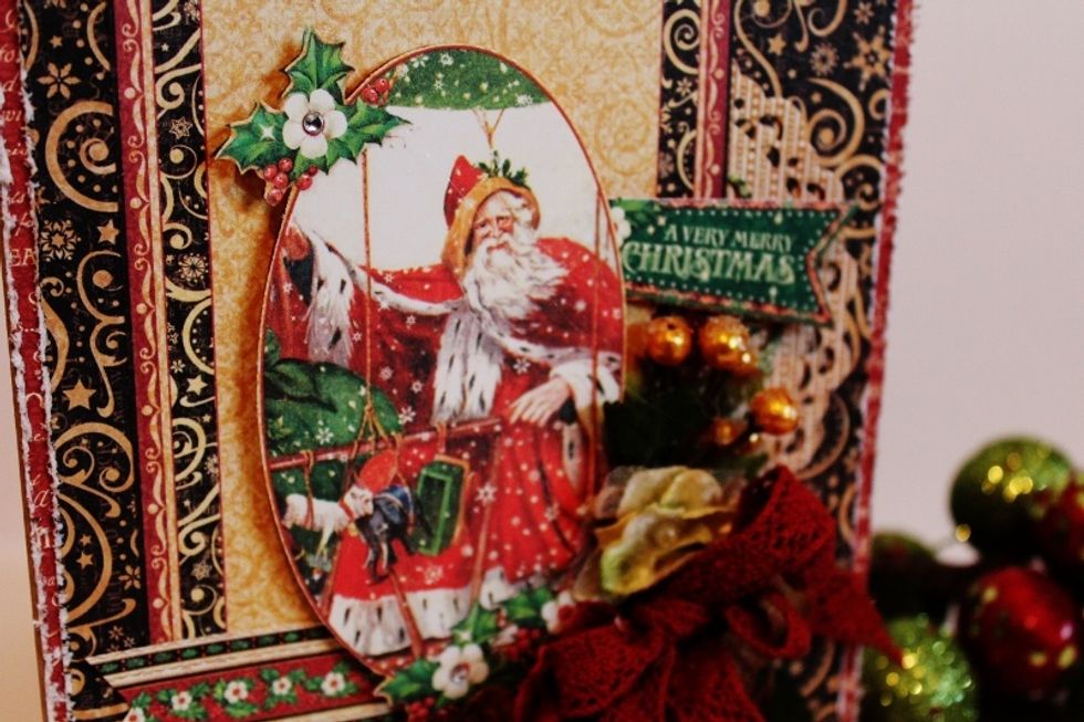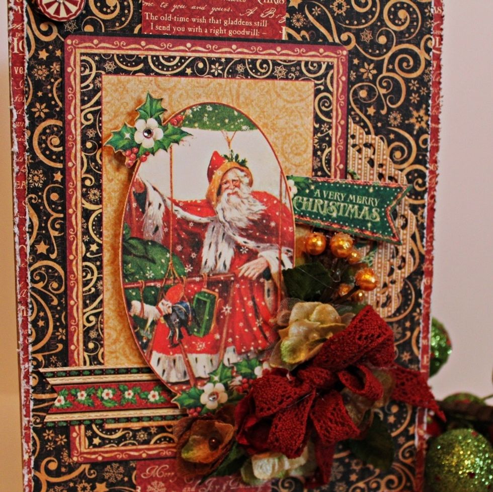 Fussy cut like St Nicholas Ephemera Card out. Add to front of card with pop dots.