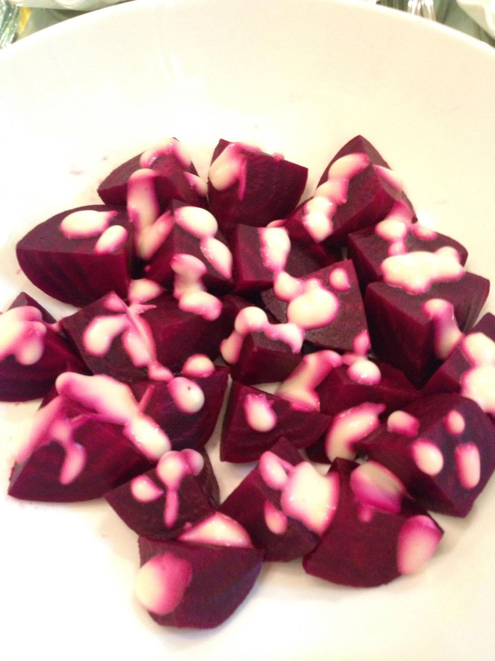 Quartered cooked beetroot. I get them ready cooked. But you can cook them yourself. Either boil them or roast them wrapped with a foil in the oven 180 C 1 hr.