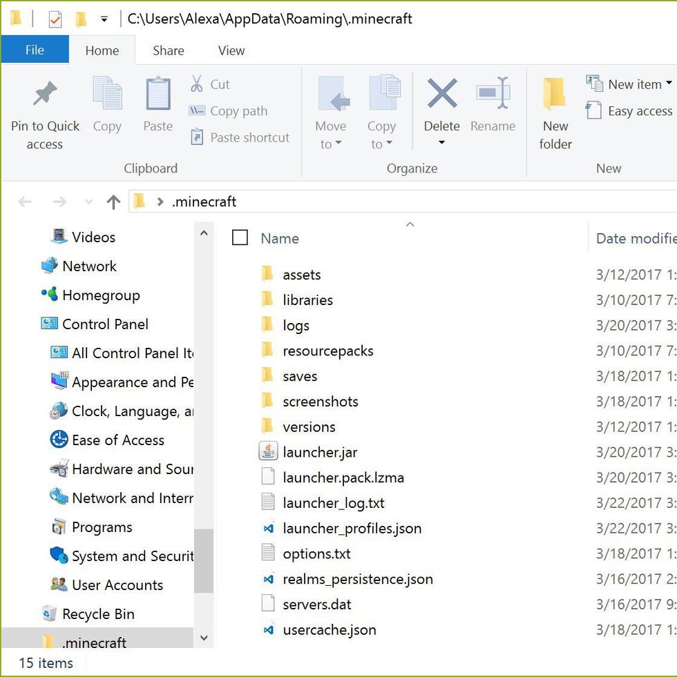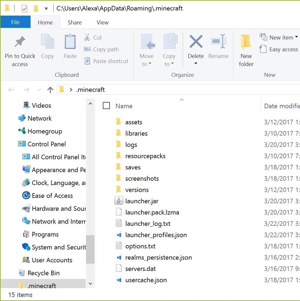 You should see a folder like this come up. Go to the screenshots folder to look at your screenshots (press F2 to take a screenshot). If you have a resource pack put it in the resourcepacks folder.