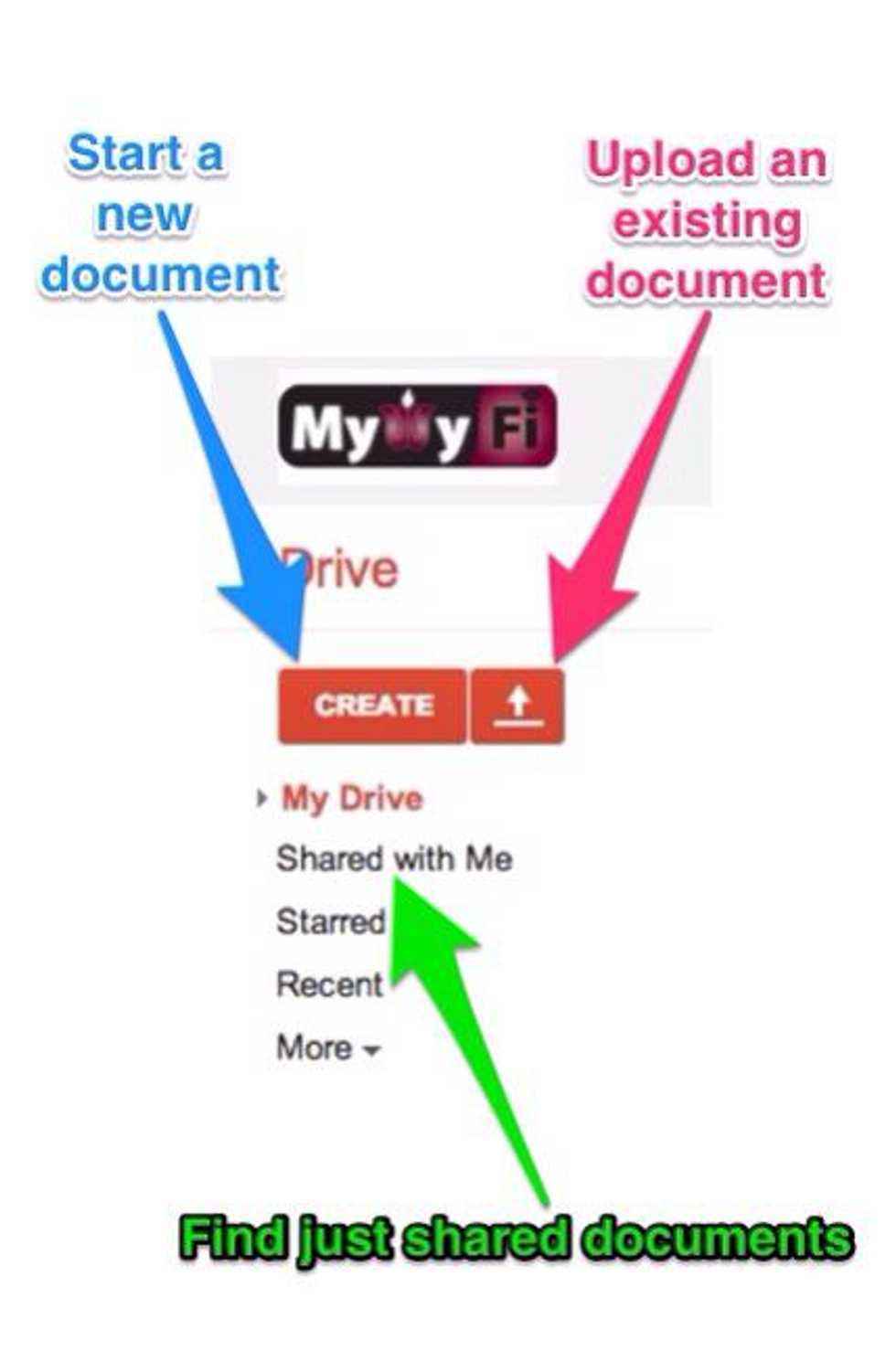 Create new documents or access documents shared with you using the menu at the left.