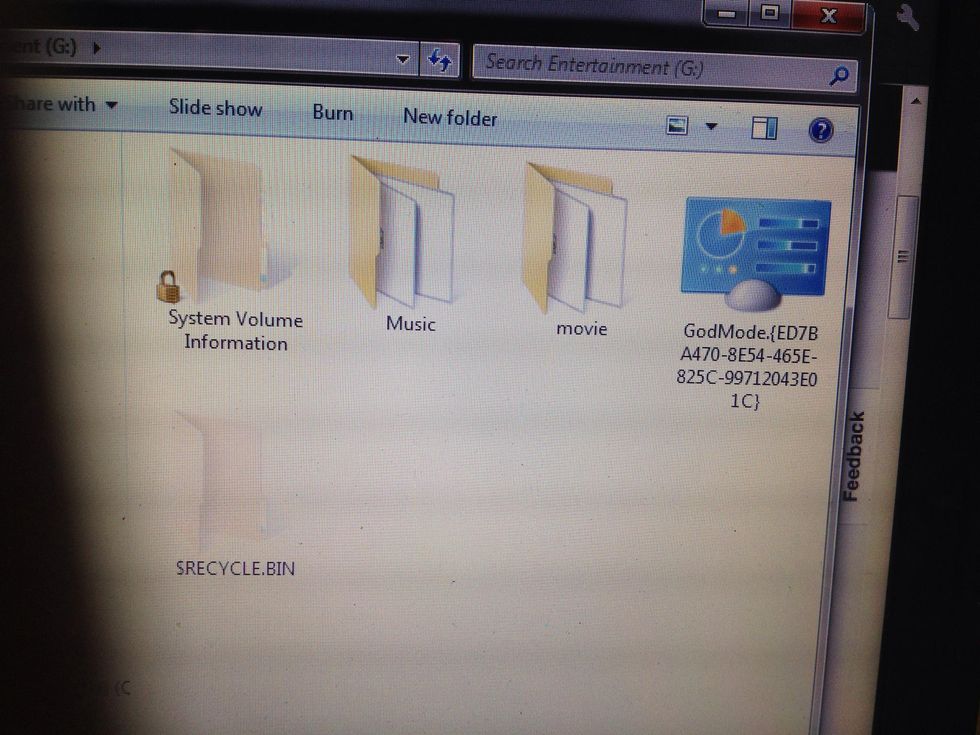 Step 1: Right Click.Step 2: Click New Folder.Step 3: Rename the folder by "GodMode.{ED7BA470-8E54-465E-825C-99712043E01C}". Then press enter.Step 4: Click the Folder.Now you have the ultimate control panel. Enjoy :)Voila! God Mode for Windows 7!