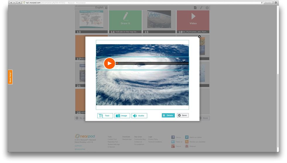 You can add text, image or audio to your slides. Tap on the "Audio button" to upload a file.