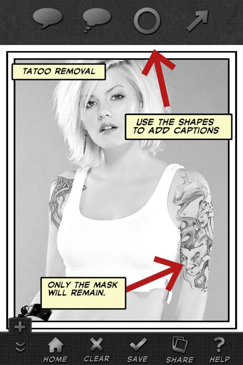 You will see the shapes(arrow and circle) in the app. Tap one of them to add it on the photo.