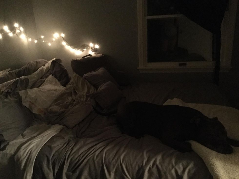 Adding string lights, or Christmas lights, provides a nice calming ambiance to any room.