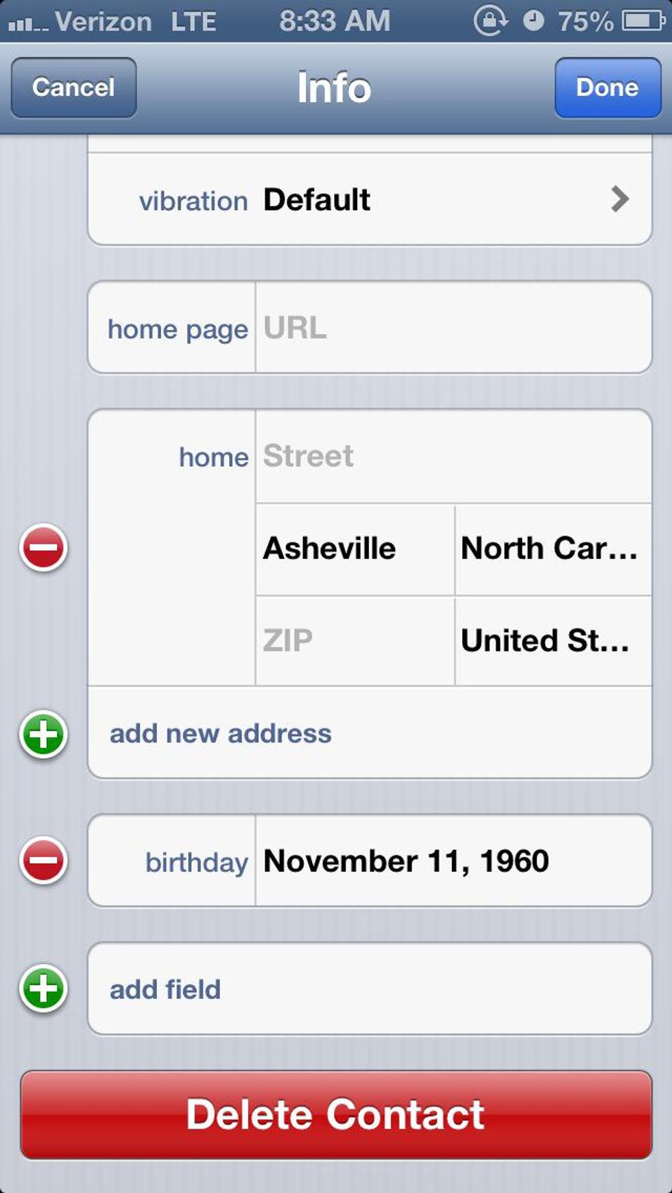 open contacts appselect a contact the tap edit in top right cornerthen you can edit the contact. scroll down to address and add the persons address in therewhen finished tap done.