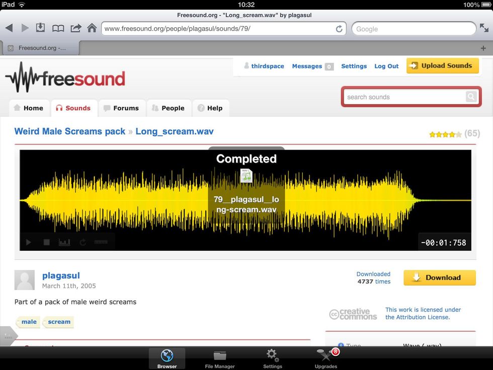 Use the Browser in iDownloads+ to find free-to-use sound effect samples on freesound.org