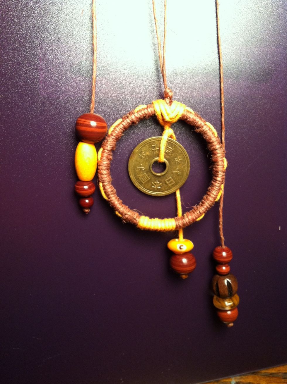 Carefully retighten and spread your string back to cover any gaps. It should now be facing downward. This will hold your center charm. You can add it now but I'm going to wait.