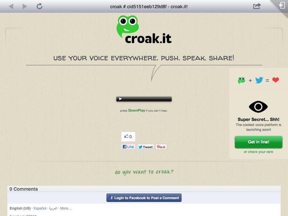 Go to croak.it and push the 'Push to craok' button to start recording.