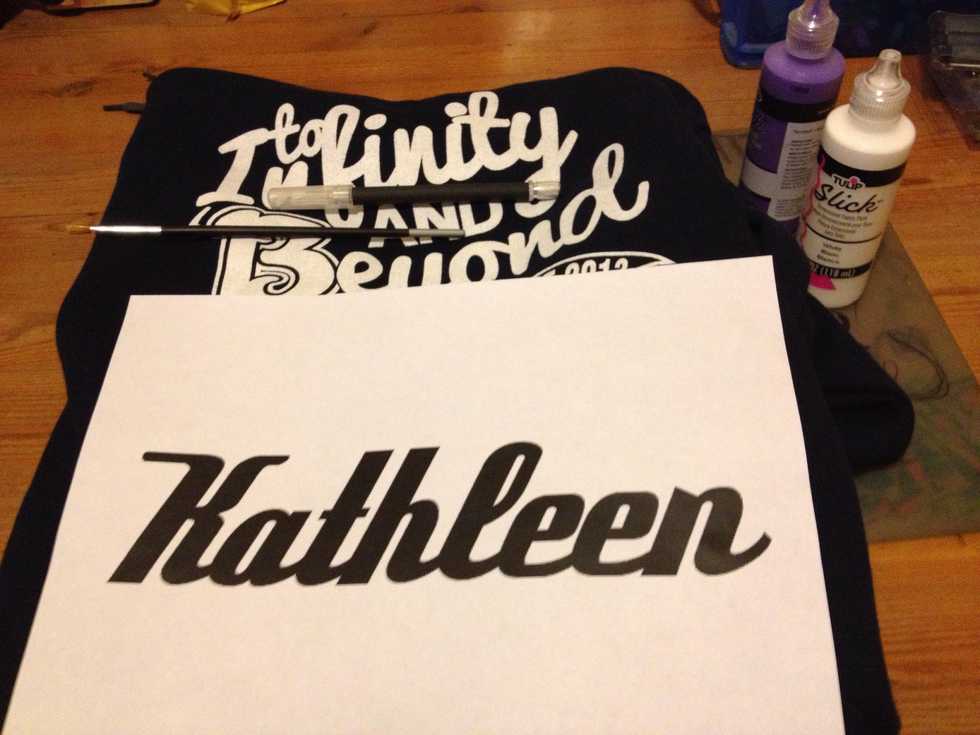 Supplies I used. Printed out her name on regular paper n will be making a stencil out of it. Bad thing about using paper it will tear when removed do to adhesive. That's the front of her sweatshirt.