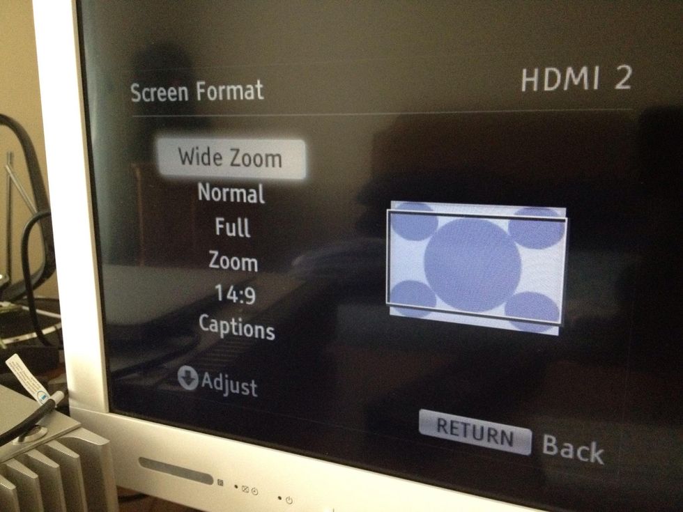 Now choose the type of affect you want. My guess is you want it to make it always fill the screen (wide zoom), but you can do some trial and error to work out your favourite. Have fun.