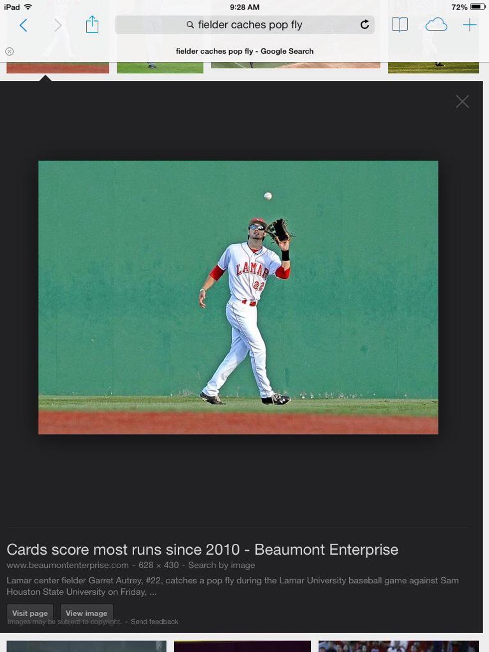 Primero, El pitcher pitched el pelota.Luego, El sinorito swung el bate.Despues, El sinorito pega la pelota.Finalmente, Yo agare el afuera estoy tres.