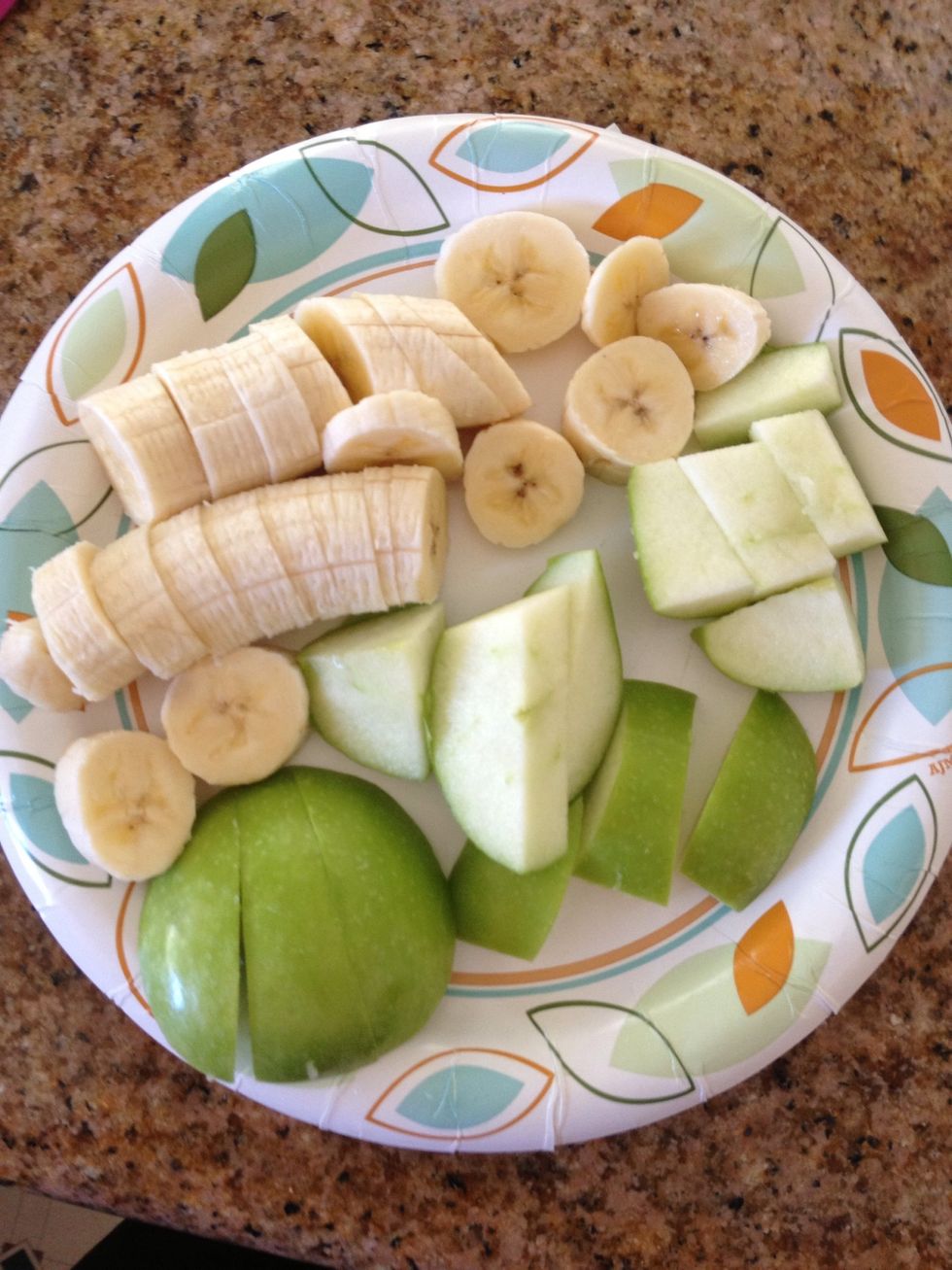 Cut up well. Apple skins have tons of nutrients, so I like to keep them on! If you want a more banana flavor in your smoothie, only add 1 apple. Vice versa for the apples.
