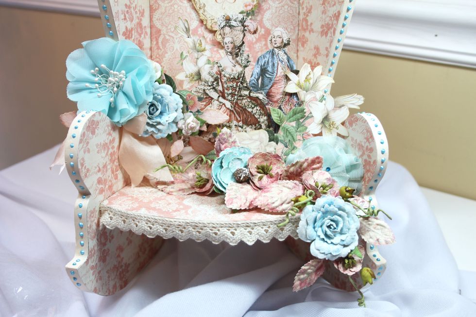 Add flower adornments to the top of the chair.