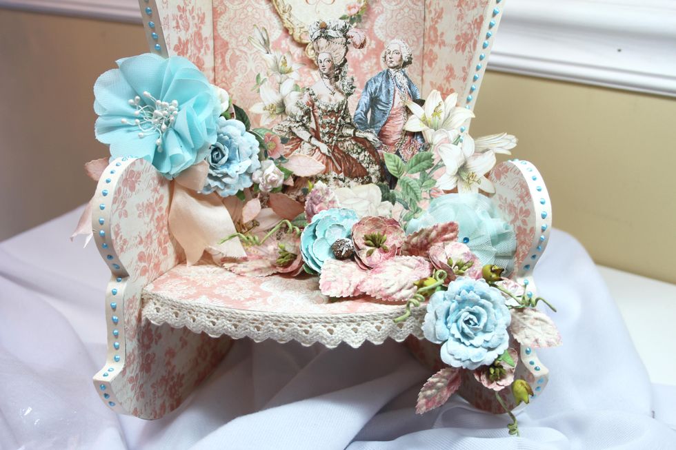 Add glittered die cut to the top portion of the chair just below the flowers.