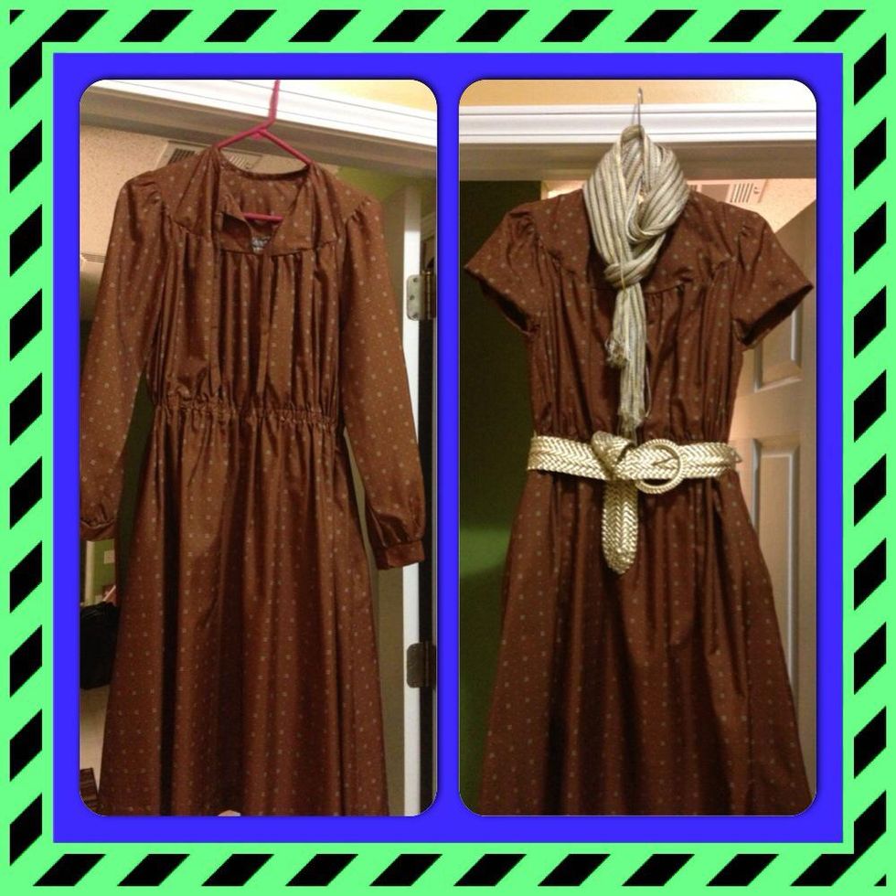 So this is a vintage, hand made dress I found at the thrift store. I paid around $2 for it. I don't like the sleeves & wanted to update it a little....