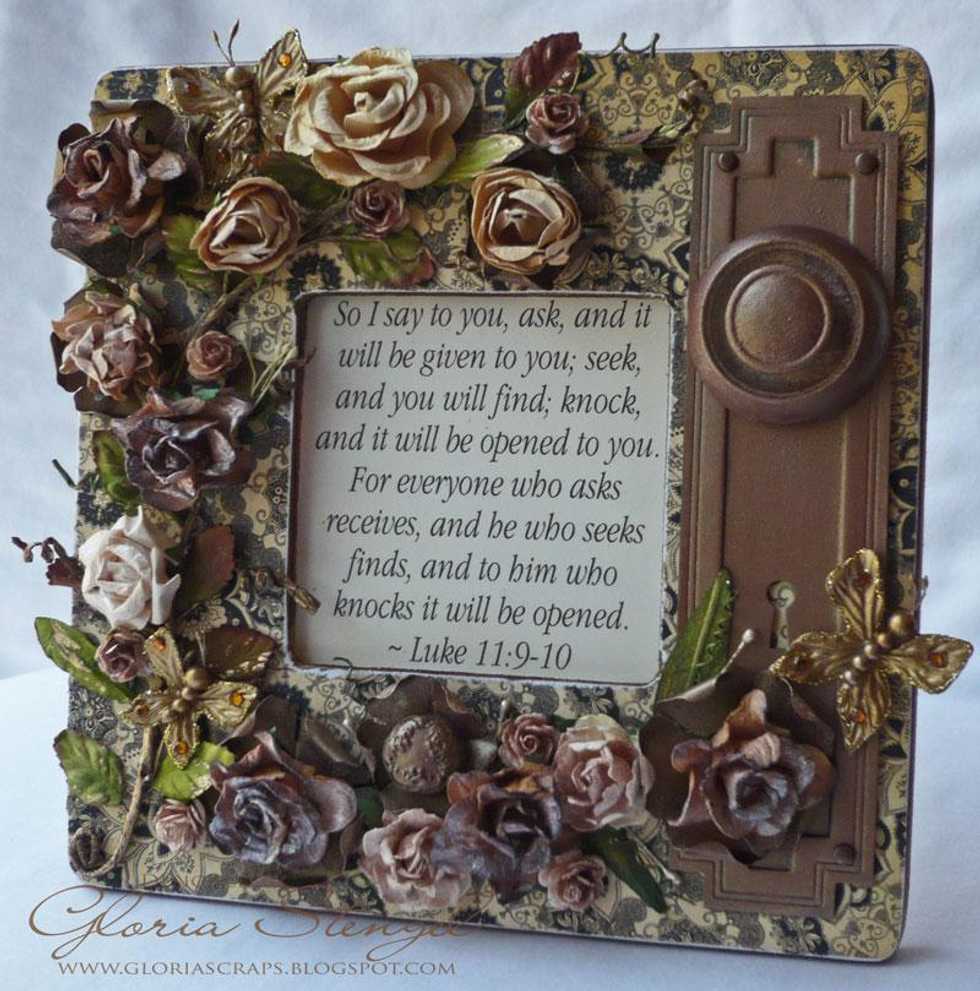 Use the same process of paint and mica powder to alter the metal door plate and knob. To get the shine, I set the powder with a fixative. (Metal items are from Graphic 45.)
