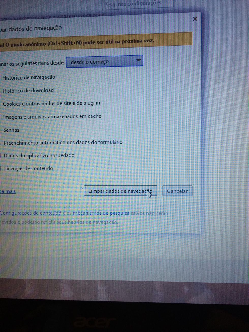 Marcar todas as caixinhas ( histórico de navegação, histórico de download, cookies e outros ....)