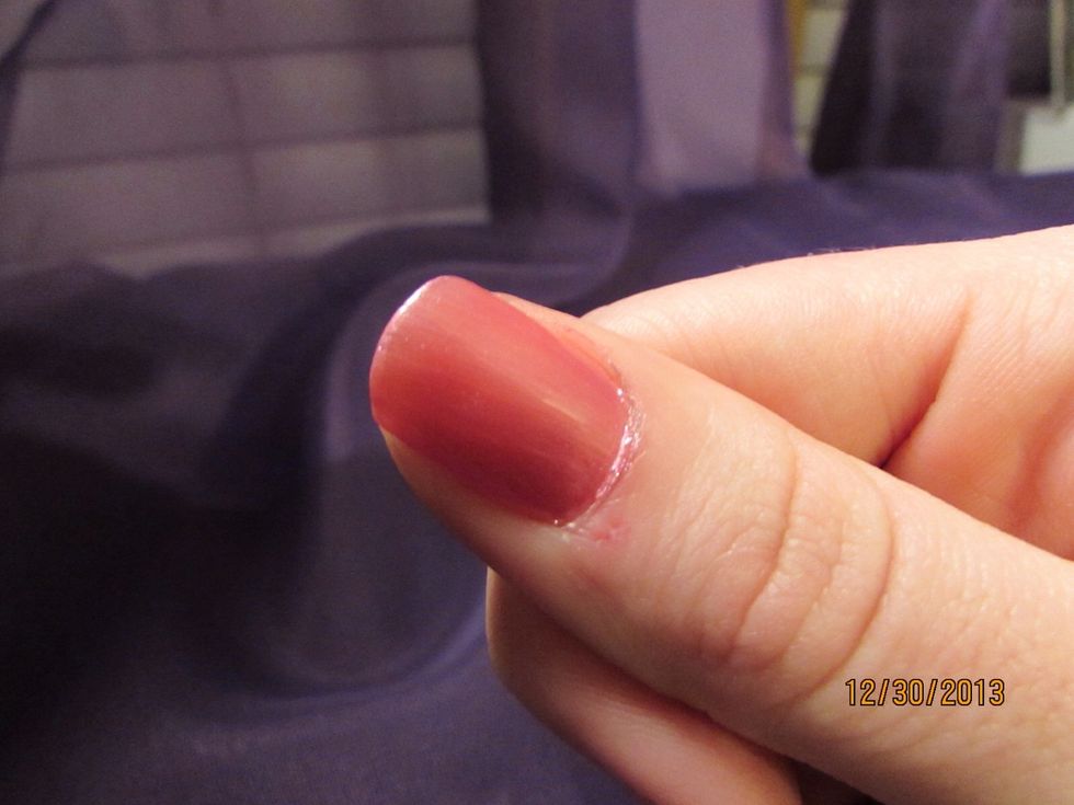 Start in the corner of your nail and stroke the nail polish slowly down into the middle of your nail.