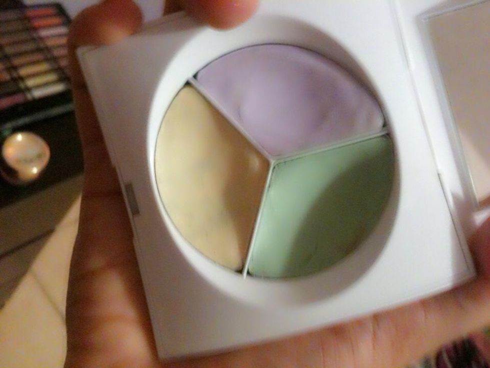 Purple concealer hides brown spots and the yellow, blue spots like veins also you can use beige to hide the dark circles.