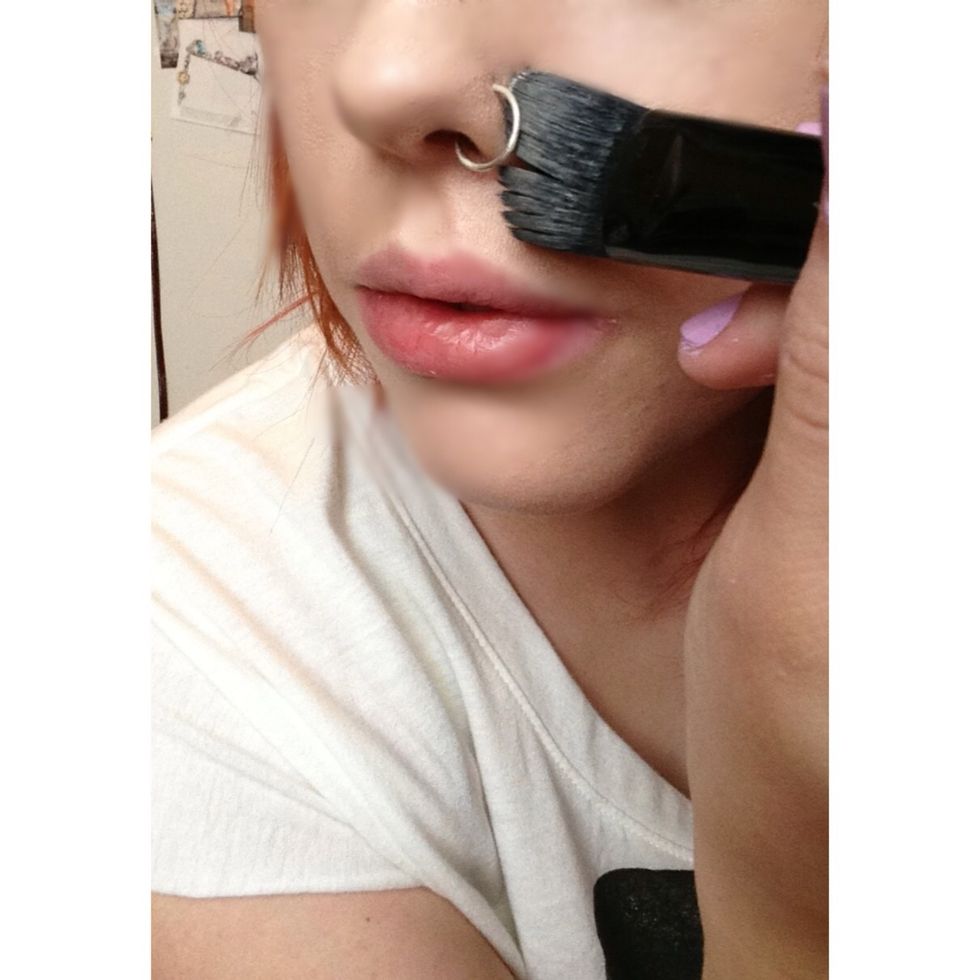 Using an angled foundation brush really helps apply the foundation right where you need it.