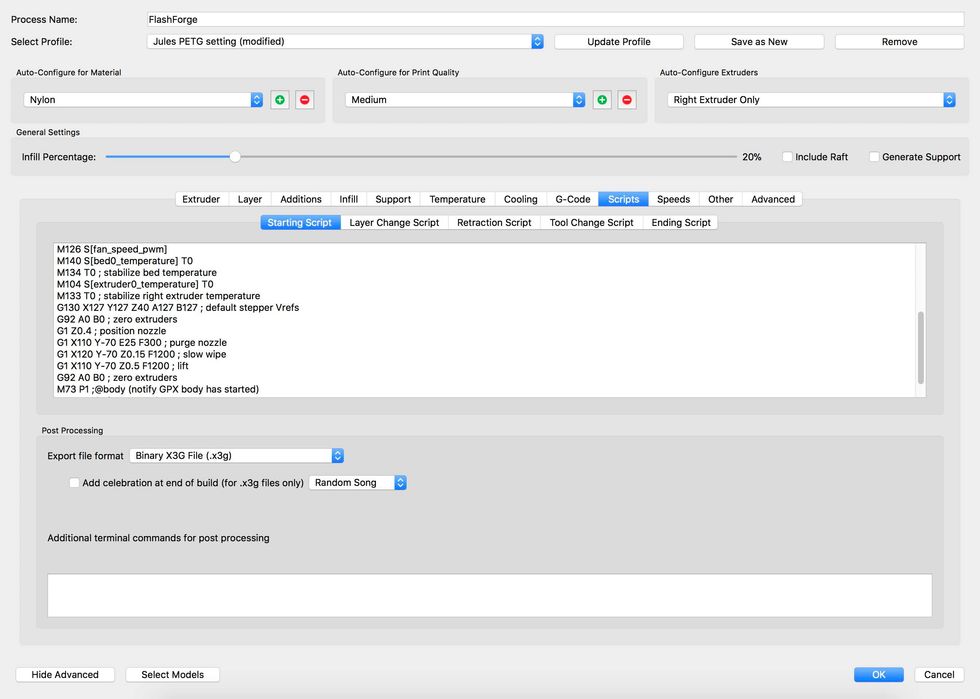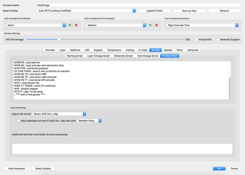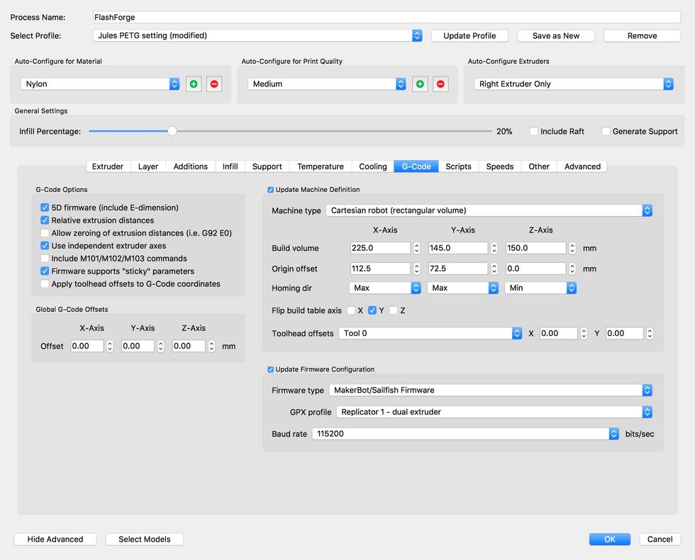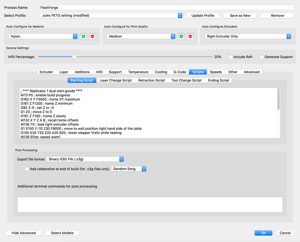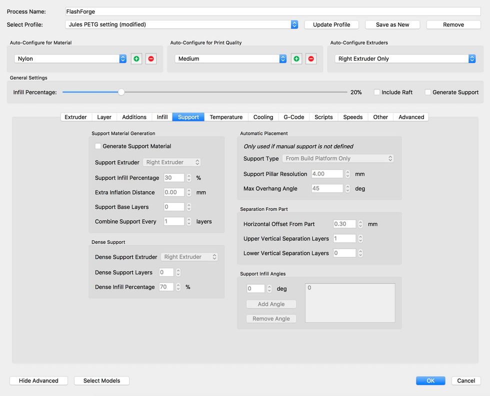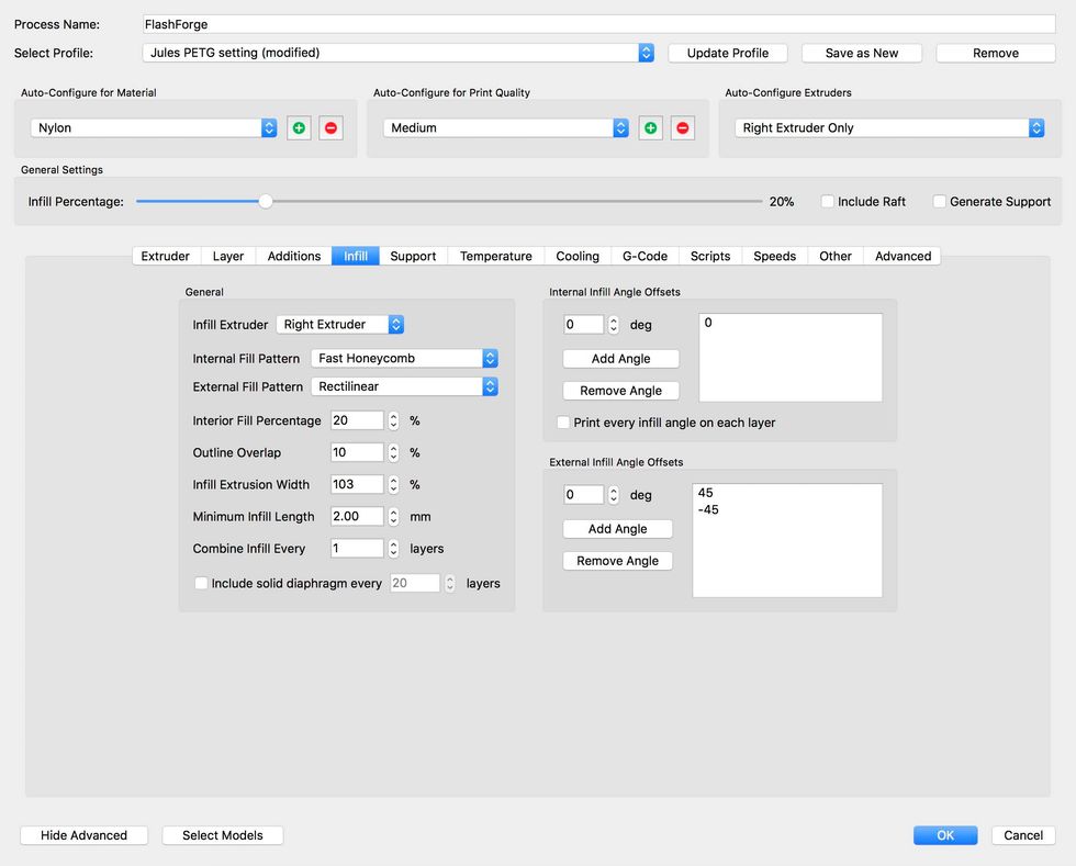 Jules recommends using .25 for layer height but I have found 2.0 works just fine.