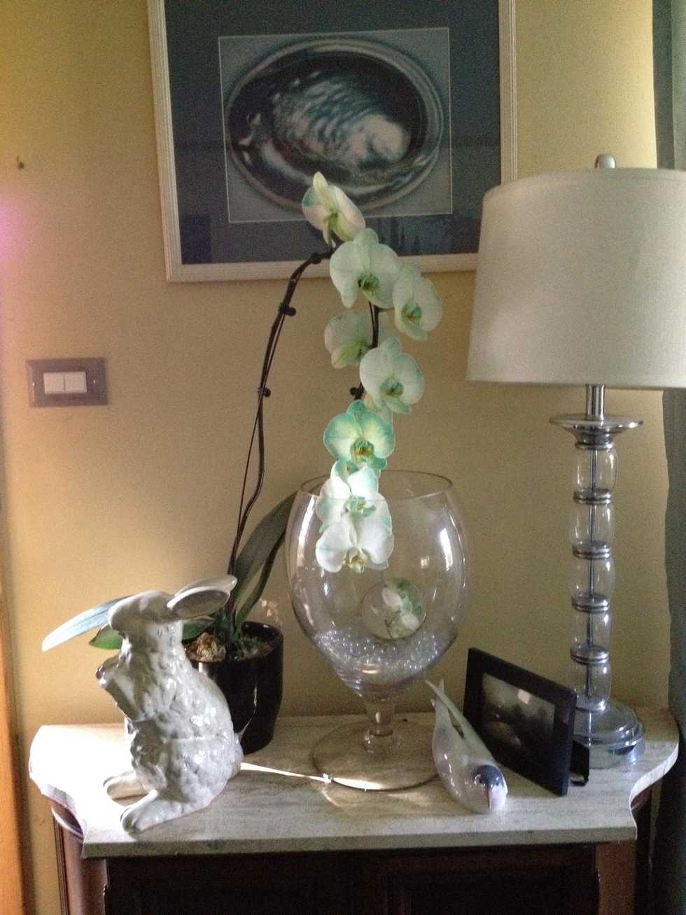 There was more blue pots here but cat moved Them in favor of smooth surface and feng shui.