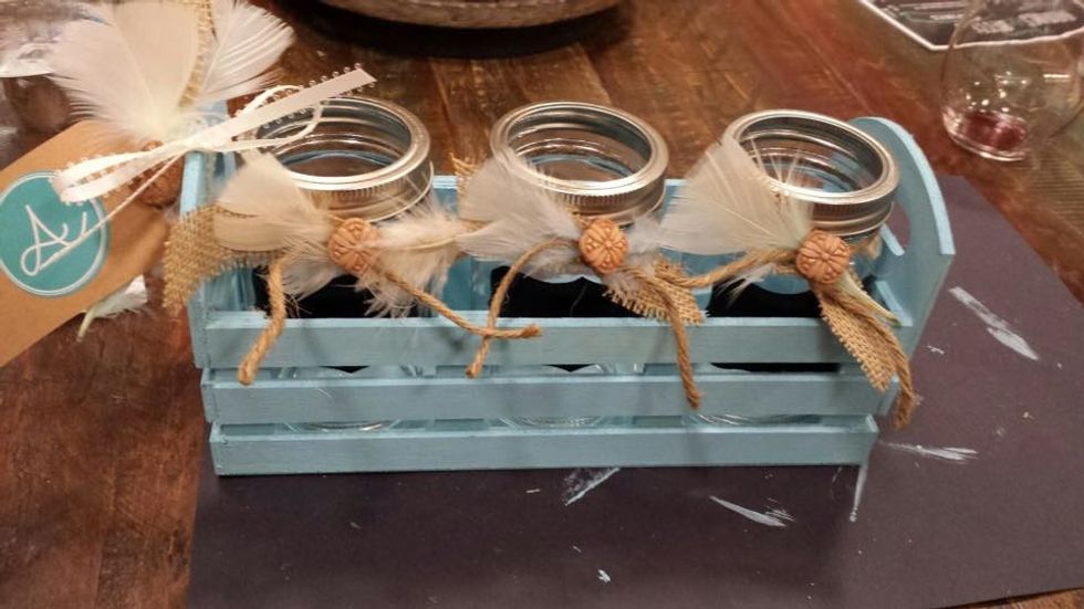 Sign registration waiver and put apron on. Paint crate surface with a light coat of acrylic paint. Set aside and allow to dry.