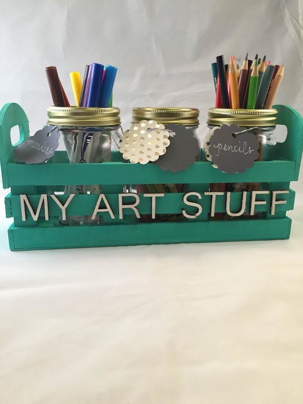 Label each jar with contents. (Exs: Markers, Crayons, Pencils)