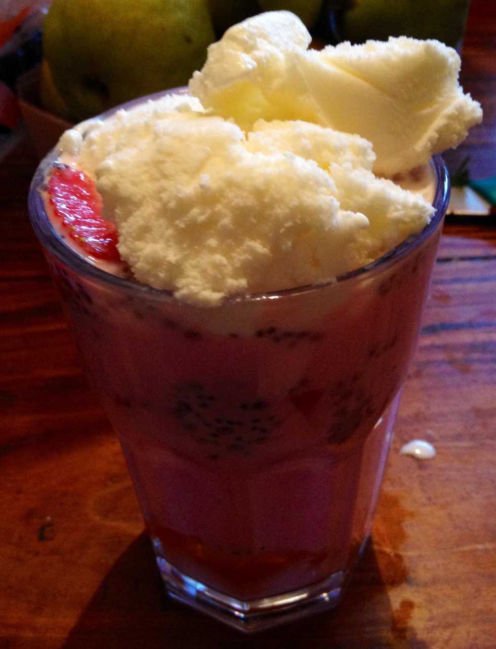 2) about a tablespoon of rose syrup, too much and it will be too sweet
