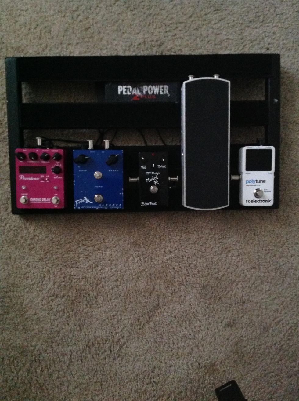 Have your pedalboard ready with Velcro so you can put the pedals on nicely. In this case I'm using a pedaltrain 1 pedalboard.