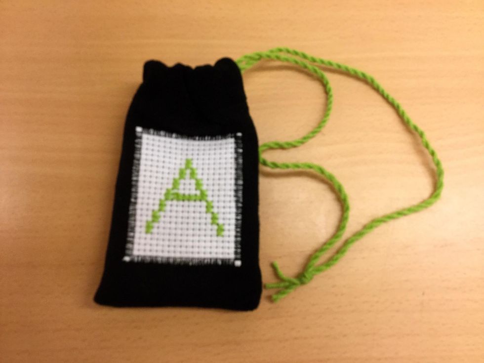 - Att sy ett korstygnsbroderi på ett fodral.