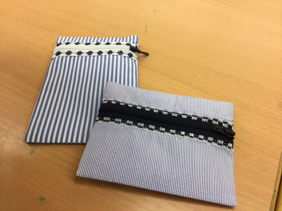 Tvärnåla ihop sidorna. Tänk på att lämna blixtlåset öppet en bit.