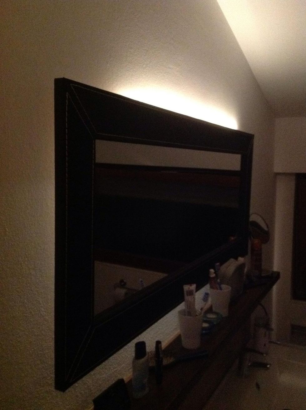 Put the mirror on the wall, put the LED light strip behind your mirror and you're done.