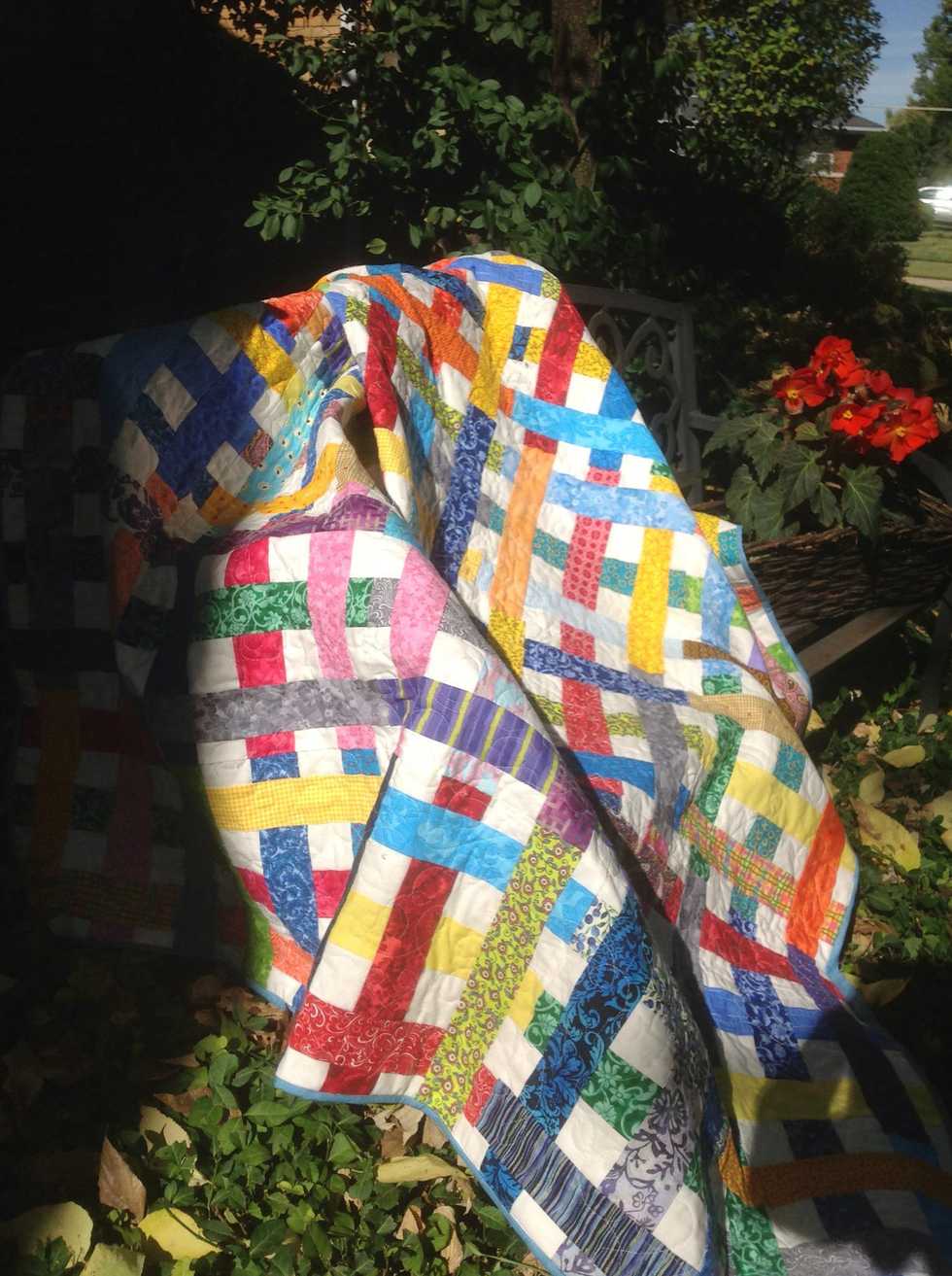 Trim some excess batting and backing. Allow a few extra inches of back/back on the edges. Use large safety pins for extra hold. Free motion all 3 layers.