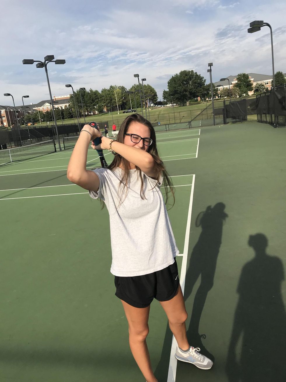 First start with two hands on the racket, and the racket behind you just like in forehandMake contact with the ball in front of youFinally finish with the racket behind you