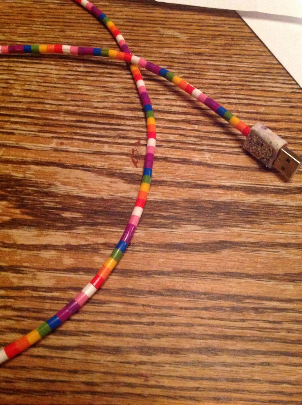 Last spread the glitter that is on the tooth pick on the input thing on the cord.