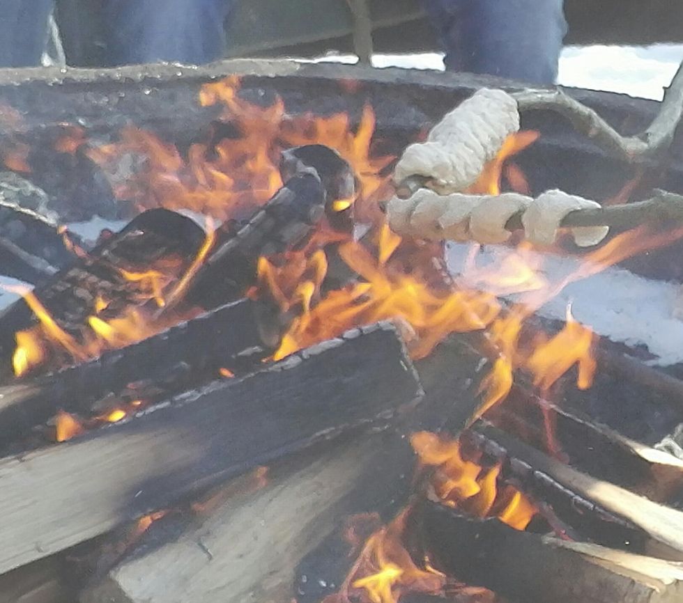 Ta en bit deg. Rulla den mellan dina handflator så att degen blir avlång. Rulla sedan degen runt toppen av din pinne.