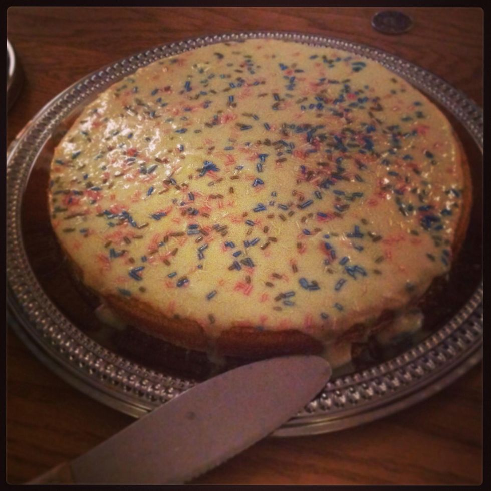 Strö till sist strössel, och ställ in den i kylskåpet i en eller två timmar. Sprinkle the sprinkles, and set it in the refrigerator for one or two hours.