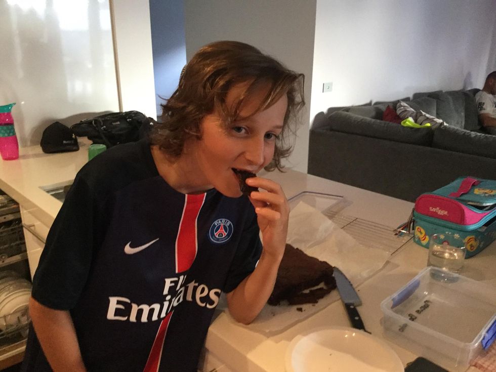 Once dry ingredients are mixed together well add melted butter and chocolate. Steer well to combine
