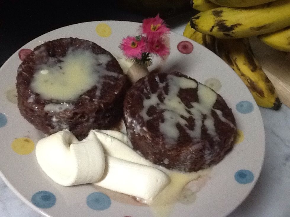 And to add more of the sweetness I put 1 tablespoon of dark chocolate and bat it with the ingredients