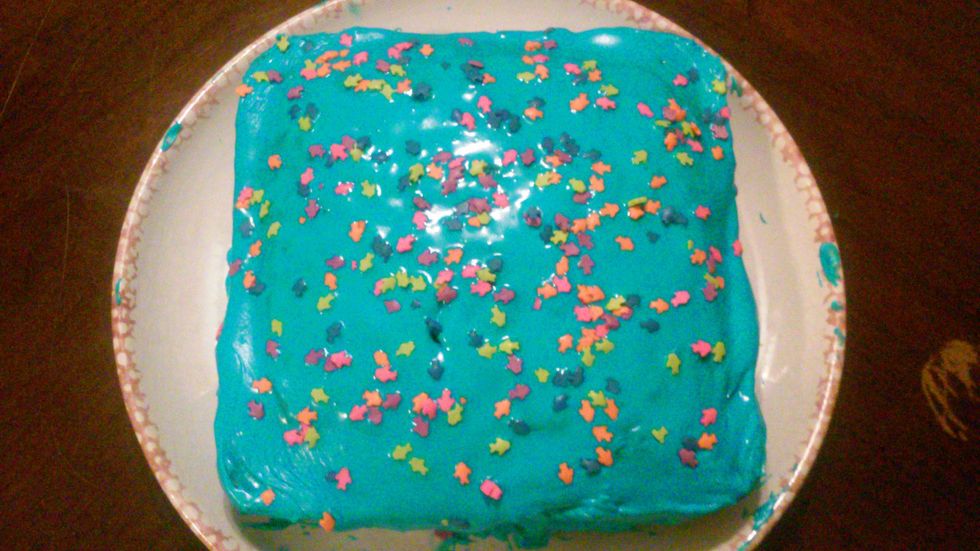 then you could use toppings of your choice remeber to let cake cool down before adding toppings