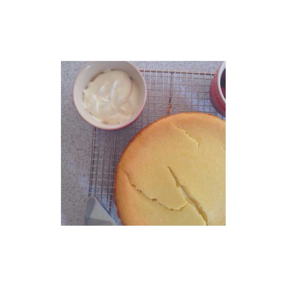 Step 11 ( optional ). While the cake is cooking put the thickened cream, vanilla extract and caster sugar into the blender and blend till light and fluffy. Put in the fridge to keep fresh.