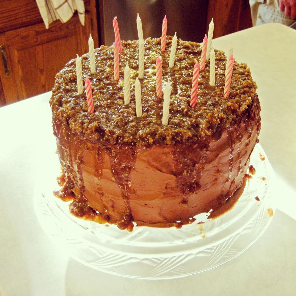 Finished cake!! If anyone wants the caramel pecan topping recipe, I can post it later.