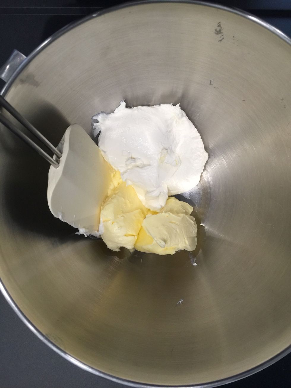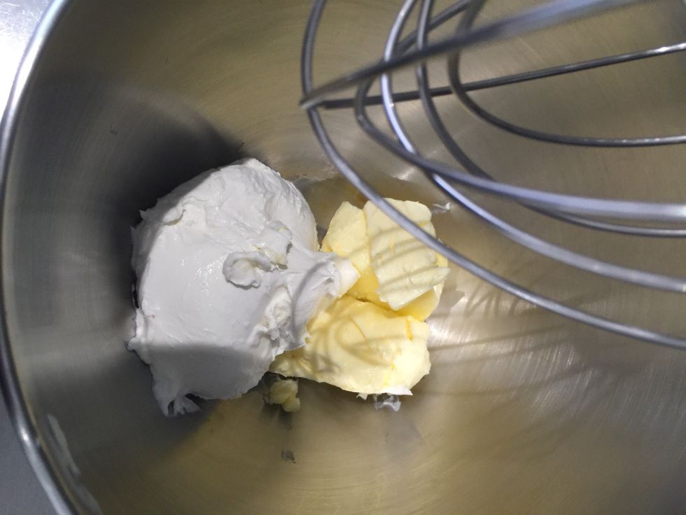Cream together the butter and the mascarpone. Add 1 tbsp of Irish cream to help the mixing. Start adding the sugar and finish with the Irish cream adding ingredients bit by bit