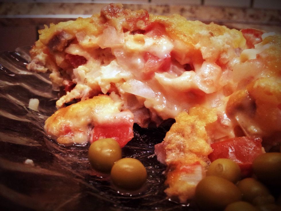 Repeat one more time the same order of supplies. Then fill the container up with whisked eggs.