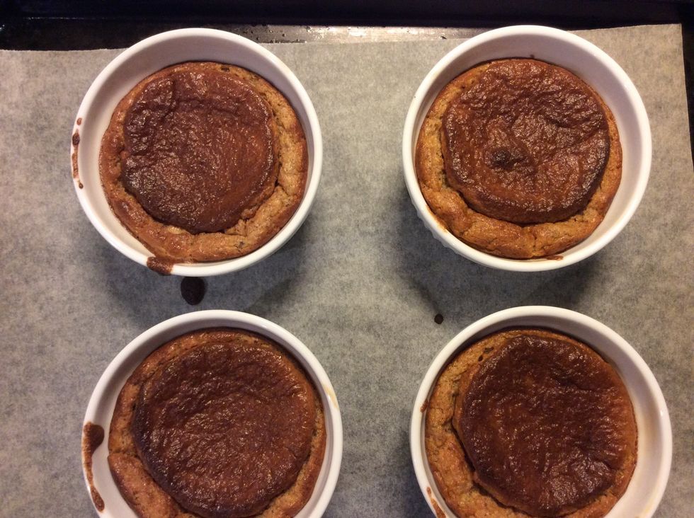 Fill your ramekins evenly and place in the middle of your preheated oven for about 22 minutes or brown and puffed