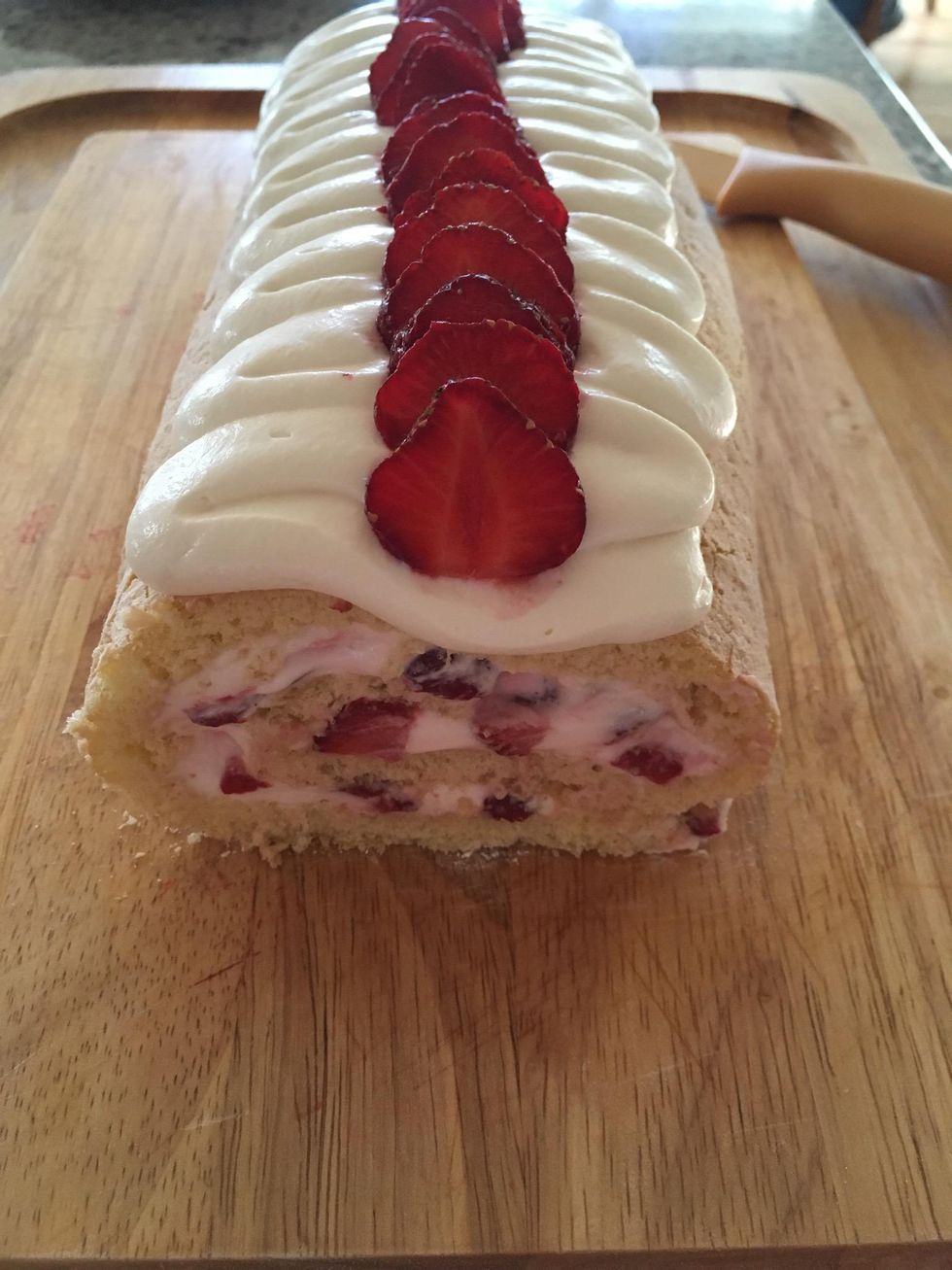 While cake is cooling, Wash, hull, and set strawberries 🍓 on paper towel to dry.